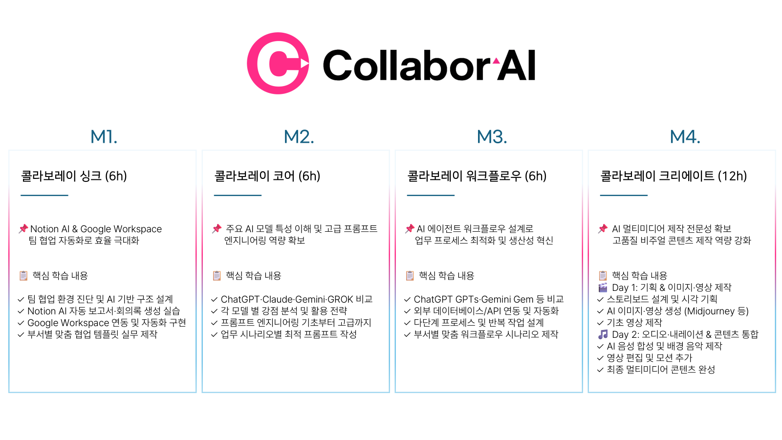 AI의 이론과 실습을 통해 직원들이 생성형 AI 기술을 업무 환경에서 효과적으로 활용할 수 있도록 돕습니다.